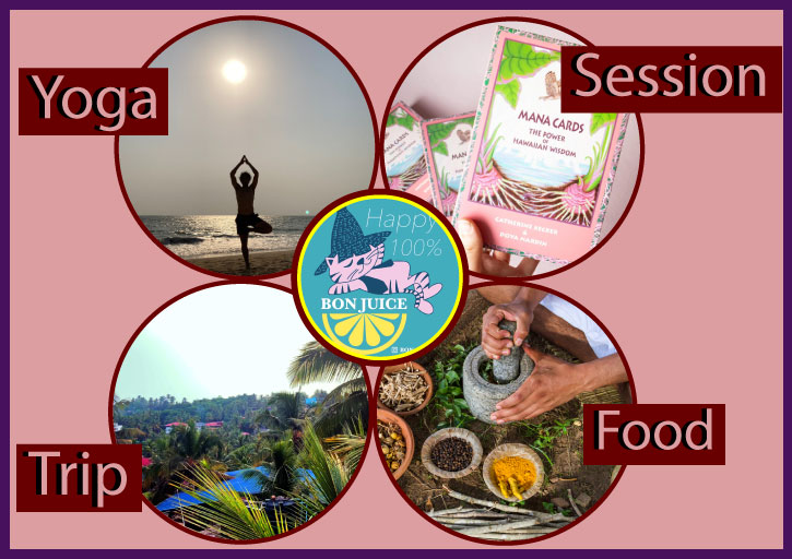 なにげない毎日がHappy に... Bon Juiceでは、以上のような様々なサービスを提供しています。このサービスを活用することによって、ご自身のより良いライフスタイルの向上と、日々の充実を目指しています。各分野において、それぞれの選択が出来ます。例えば、毎日の生活に気軽に取り入れることも可能ですし、またはご自分のタイミングで、不定期に取り入れることも可能です。皆さんと共に楽しむことをモットーとして、Happy100%をシェアしていきたいと思っております。 Yoga 呼吸を中心としたゆったりとしたペースで身体を動かして、少しでも意識を前向きに心と身体を癒します。ストレスや日常生活の氣の乱れをヨガのアーサナ、呼吸、瞑想で筋肉や関節などを包む筋膜を緩めてリラックスへ導きます。自分のペースではじめての方でも安心、簡単なレッスンを行います。 Click here Session マカリィTomomi式 「Happy」= 幸福論, Happy Session On My-Mind by マカリィTomomi 嬉しい、楽しい、幸せ、わーい。幸福論こそ人それぞれ。いつも自分の心次第。決してハイテンションの状態だけがHappyと言うわけではなく、「美しい」、「かわいい」、「キレイ」、「素敵」、「心が喜びで震えること」、「ほっこりしたり」、「今ある日常にただただ感謝したり」、「ぼお~とのんびりChillaxしたりする」それぞれのHappy。本来ありのままの自分とともに。 Click here Trip 私たちと一緒に様々な場所に旅行することができます。日本国内をはじめ、海外のあらゆる現地の良さを直に体験できます。現地の人との強力なパイプにより一般の旅行者が味わえないようなプログラムを用意しています。是非一緒に最高な遊びをしに行きませんか? Click here Food Bon juice は食べ物と食事をとても大切にしています。 食事を改善するだけで、多くの体調不良が改善します。 食べ物にはクスリと同じ効果があります。 医学の世界でも「栄養医学」という新しい分野が立ち上がっています。 これから注目される新しい分野です。店舗や催事では体が喜ぶものを心がけて提供しています。 Click here Go to Instagram